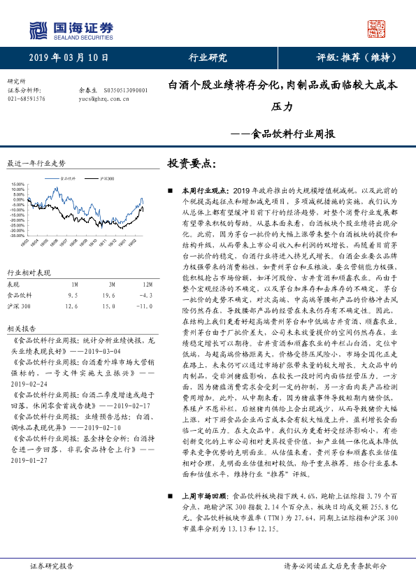 【国海证券】【20190310】食品饮料行业周报:白酒个股业绩将存分化,肉制品或面临较大成本压力-24页
