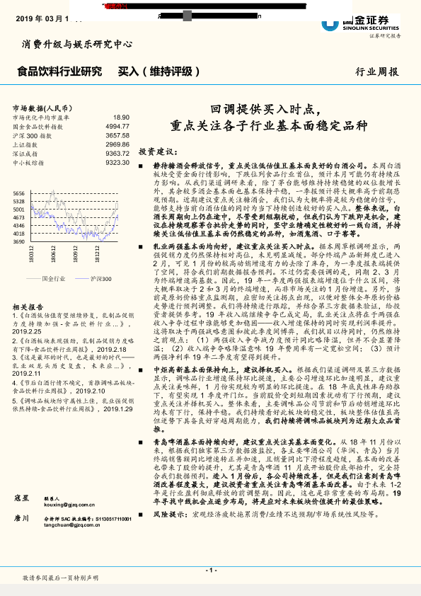【国金证券】【20190310】20190310-国金证券-食品饮料行业研究周报:回调提供买入时点,重点关注各子行业基本面稳定品种-20页
