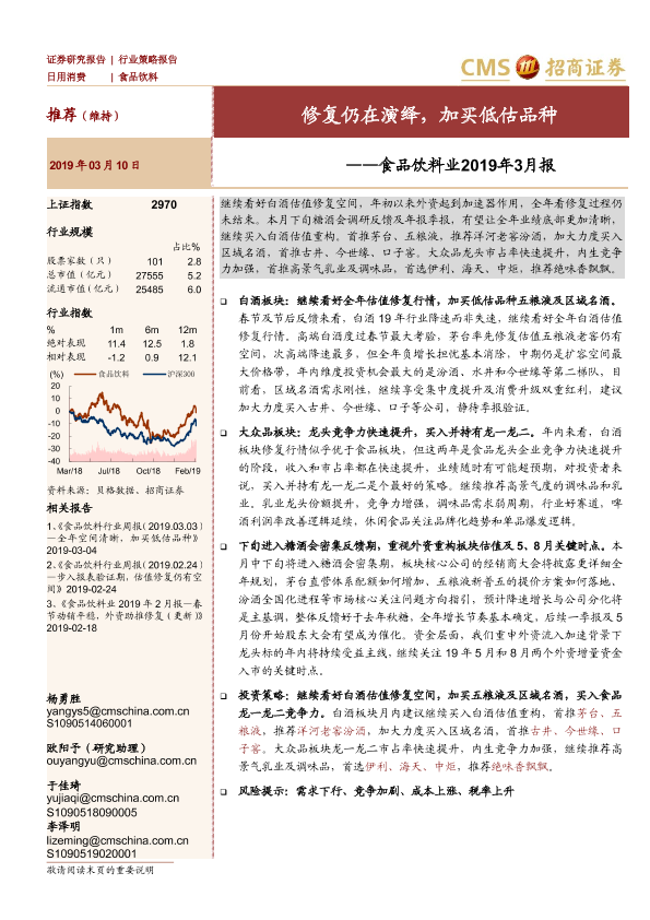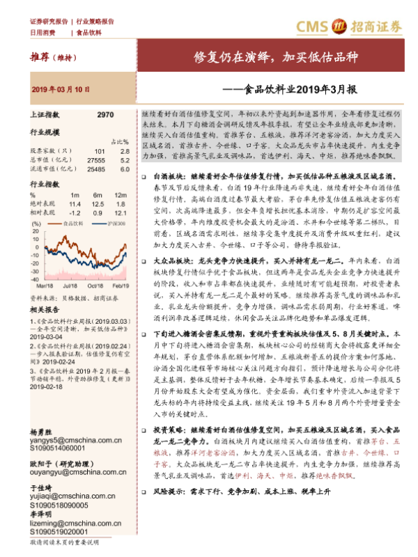 【海通证券】【201903】食品饮料业2019年3月报:修复仍在演绎,加买低估品种-17页