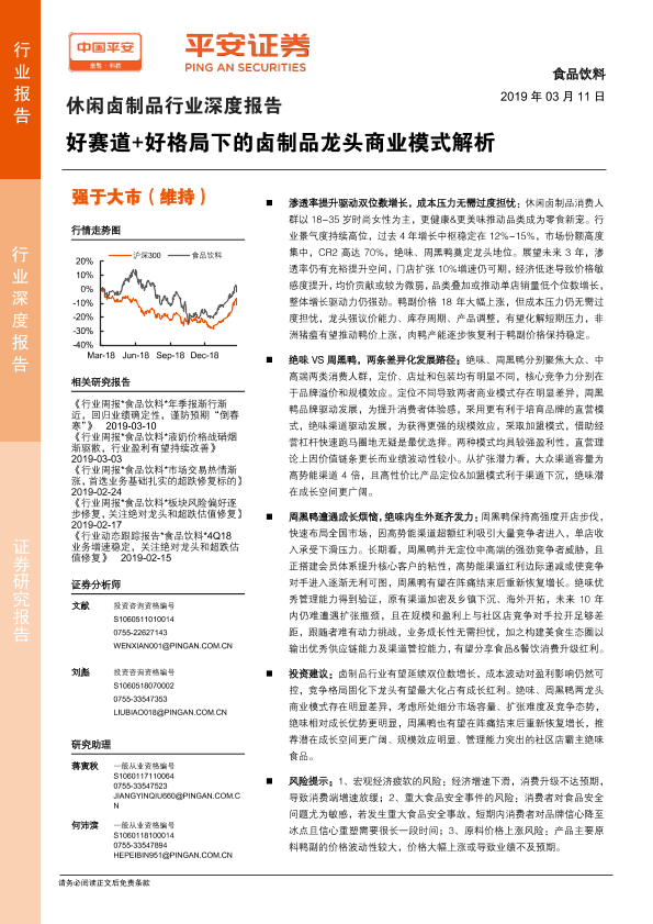 【平安证券】【20190311】休闲卤制品行业深度报告:好赛道+好格局下的卤制品龙头商业模式解析-23页