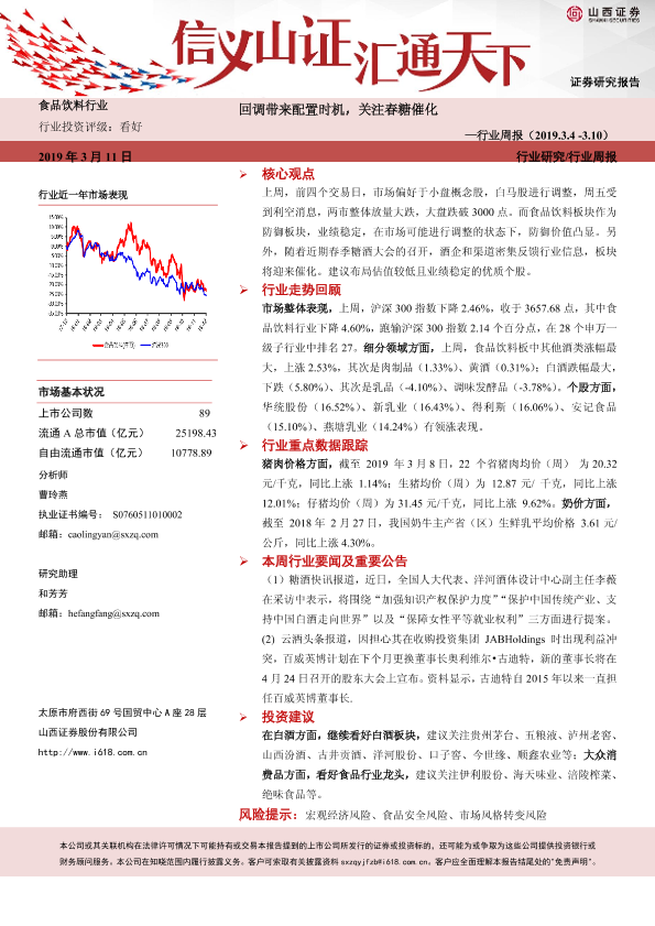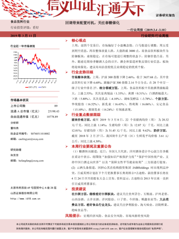 【山西证券】【20190311】20190311-山西证券-食品饮料行业周报:回调带来配置时机,关注春糖催化-9页