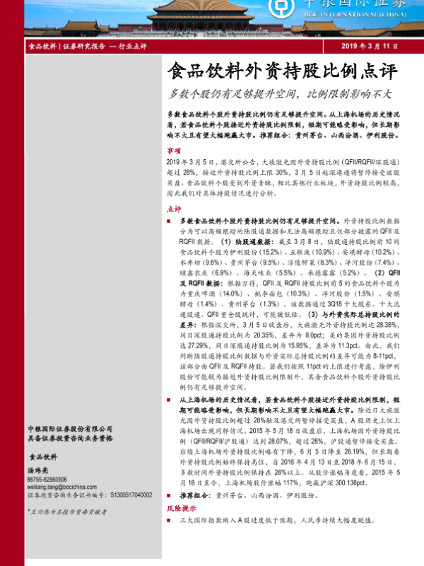 【中银证券】【20190311】食品饮料外资持股比例点评:多数个股仍有足够提升空间,比例限制影响不大-5页