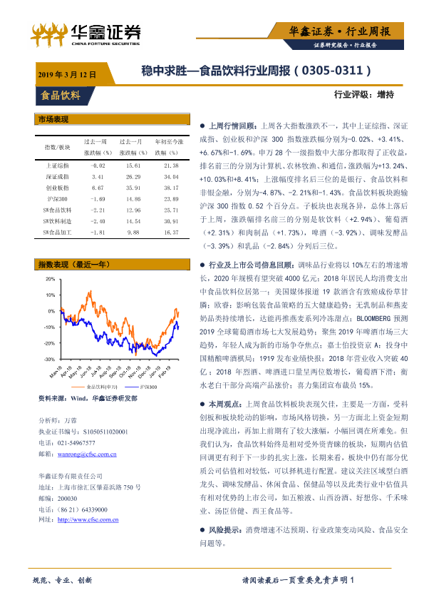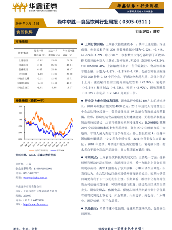 【华鑫证券】【20190312】20190312-华鑫证券-食品饮料行业周报:稳中求胜-12页