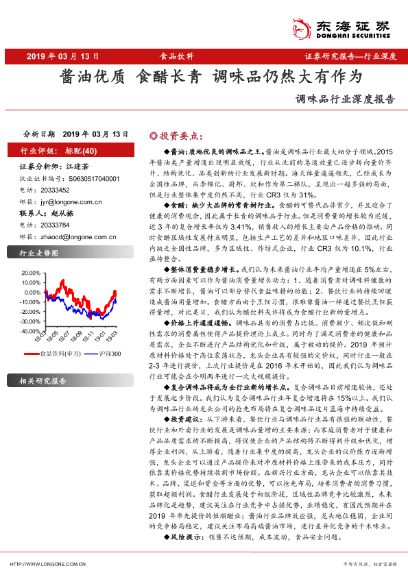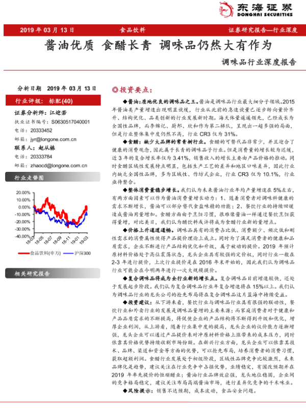 【东海证券】【20190313】调味品行业深度报告:酱油优质 食醋长青 调味品仍然大有作为-20页