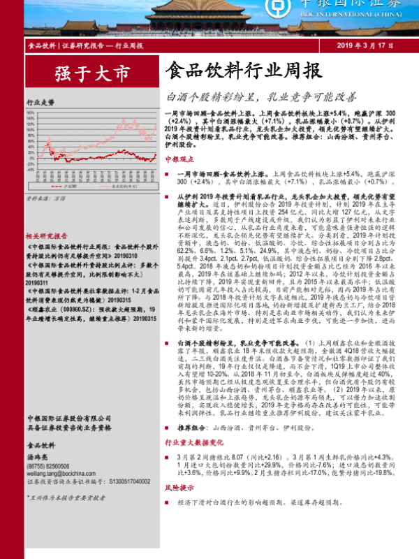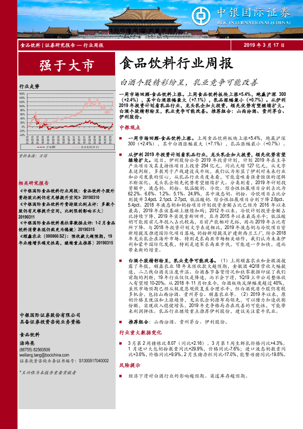【中银证券】【20190317】20190317-中银证券-食品饮料行业周报:白酒个股精彩纷呈,乳业竞争可能改善-19页