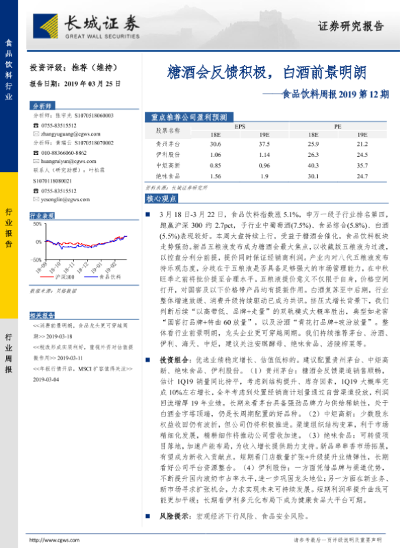 【长城证券】【20190325】20190325-长城证券-食品饮料周报2019第12期:糖酒会反馈积极,白酒前景明朗-11页