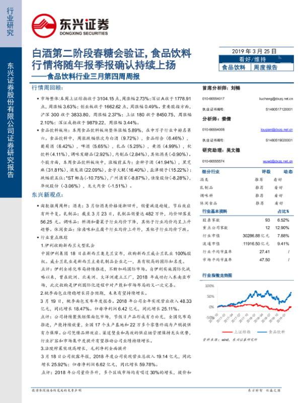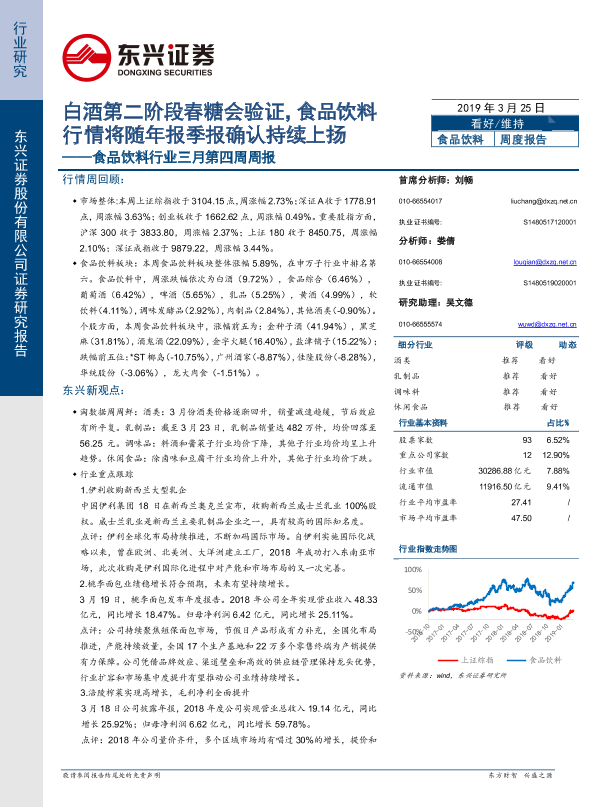 【东兴证券】【20190325】食品饮料行业三月第四周周报:白酒第二阶段春糖会验证,食品饮料行情将随年报季报确认持续上扬-44页