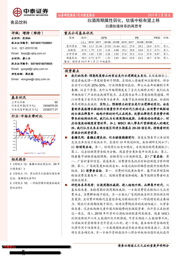 【中泰证券】【20190328】食品饮料行业白酒估值体系的再思考:白酒周期属性弱化,估值中枢有望上移-17页