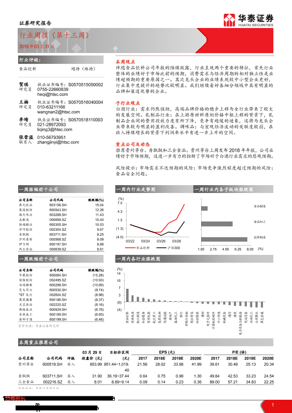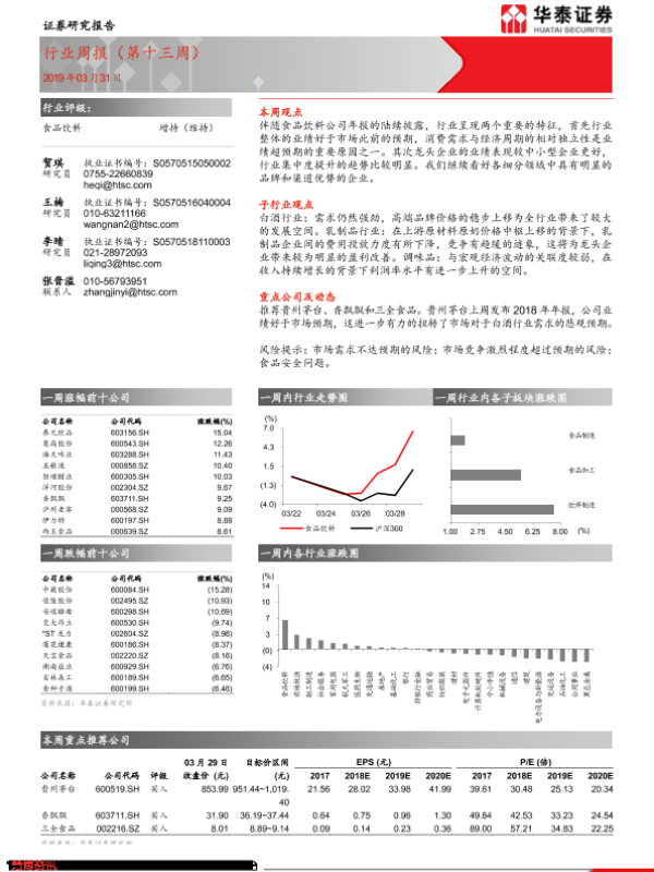 【华泰证券】【20190331】20190331-华泰证券-食品饮料行业周报(第十三周)-16页