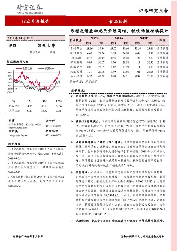 【财信证券】【20190402】食品饮料行业月度报告:春糖反馈叠加龙头业绩高增,板块估值持续提升-7页