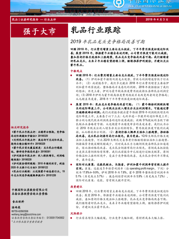 【中银证券】【20190403】2019年乳品龙头竞争格局改善可期-10页