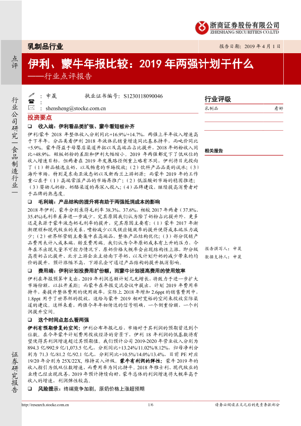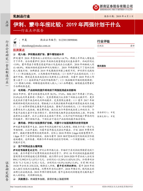 【浙商证券】【20190401】乳制品行业点评报告:伊利、蒙牛年报比较:2019年两强计划干什么-6页