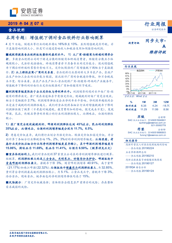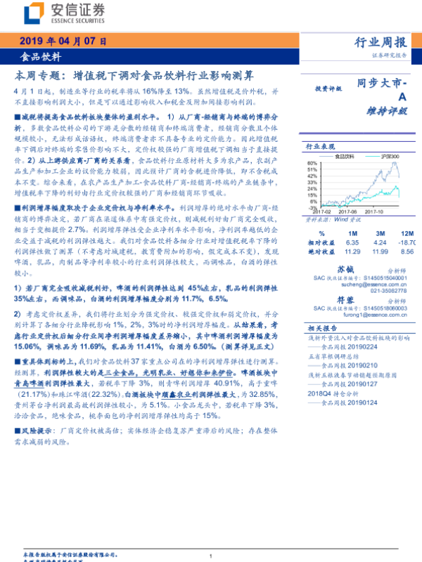 【安信证券】【20190407】20190407-安信证券-食品饮料本周专题:增值税下调对食品饮料行业影响测算-26页