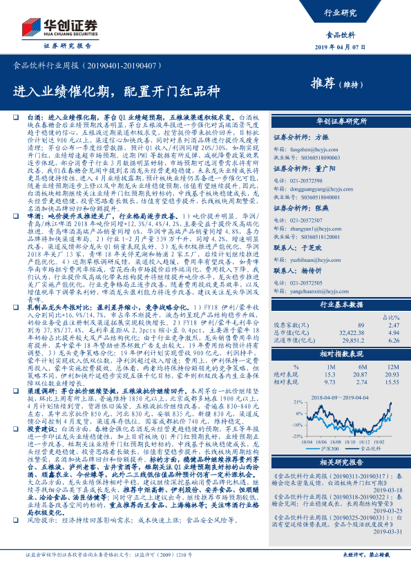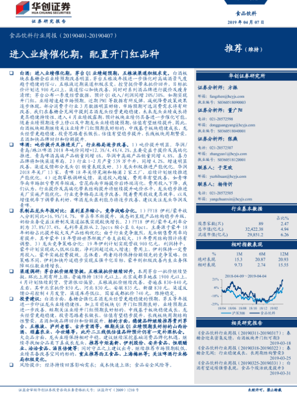 【华创证券】【20190407】20190407-华创证券-食品饮料行业周报:进入业绩催化期,配置开门红品种-26页