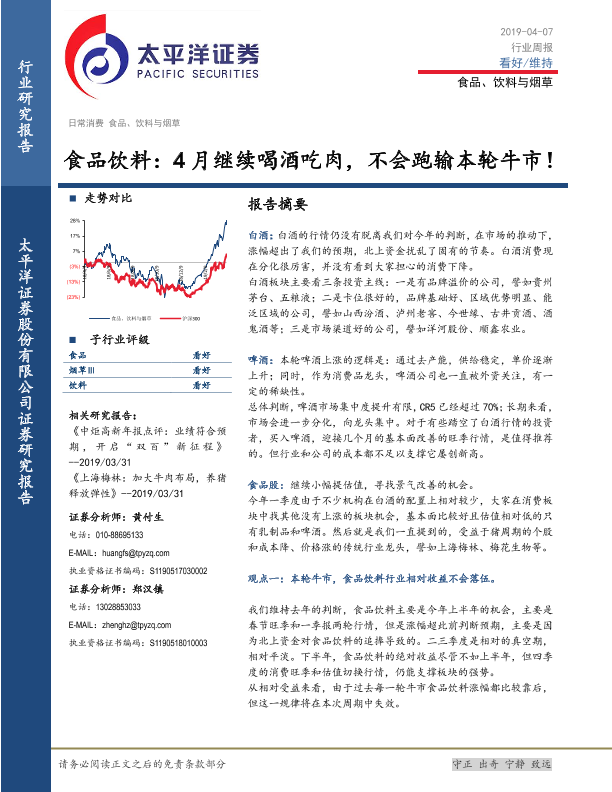 【太平洋证券】【20190407】食品饮料:4月继续喝酒吃肉,不会跑输本轮牛市!-12页