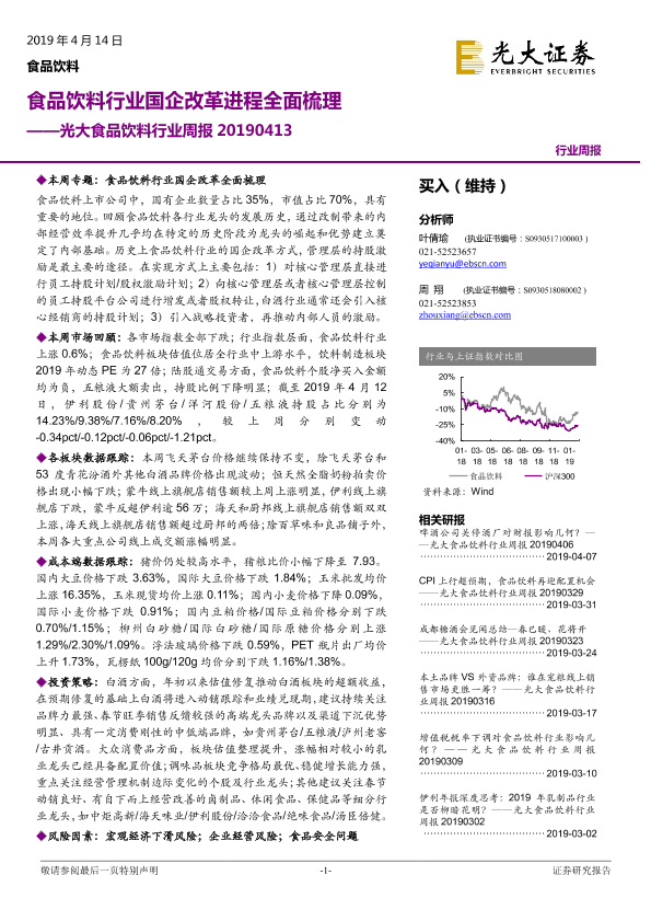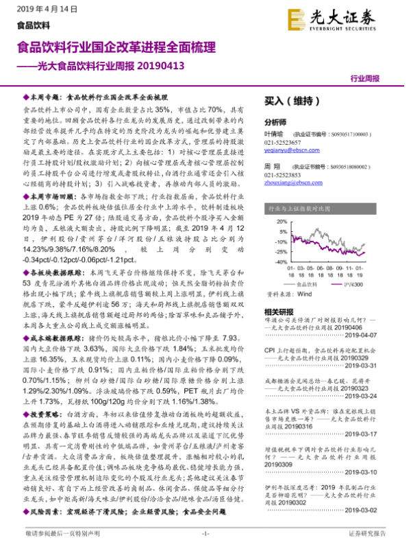 【光大证券】【20190414】光大食品饮料行业周报:食品饮料行业国企改革进程全面梳理-25页