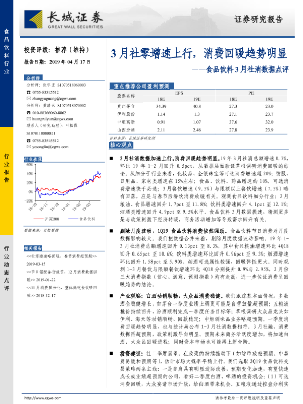 【长城证券】【20190417】食品饮料3月社消数据点评:3月社零增速上行,消费回暖趋势明显-3页