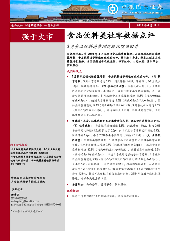 【中银证券】【20190417】食品饮料类社零数据点评:3月食品饮料消费增速环比明显回升-4页
