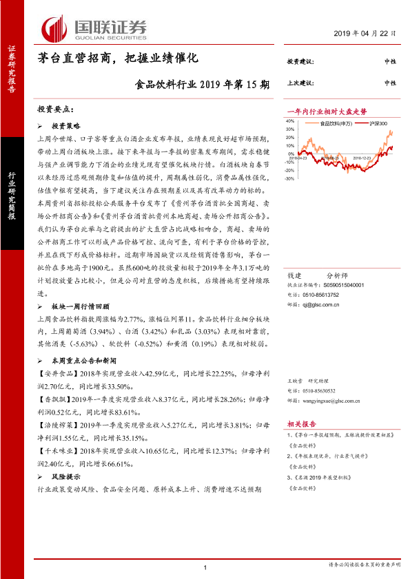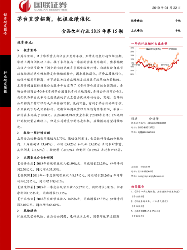 【国联证券】【20190422】食品饮料行业2019年第15期:茅台直营招商,把握业绩催化-13页