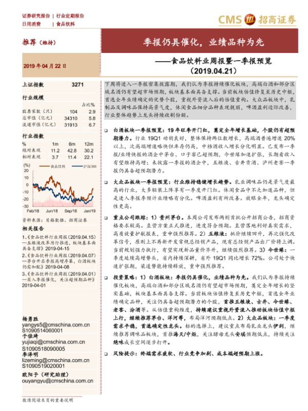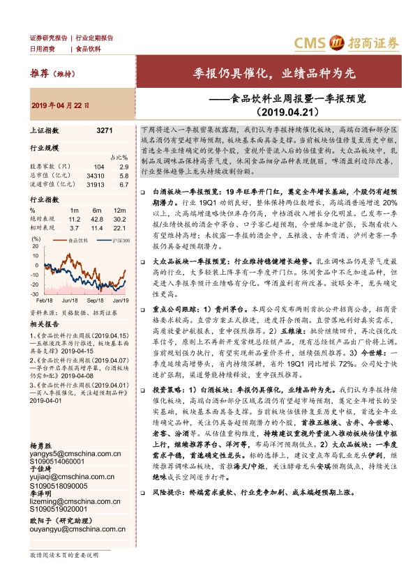 【海通证券】【20190422】食品饮料业周报暨一季报预览:季报仍具催化,业绩品种为先-20页