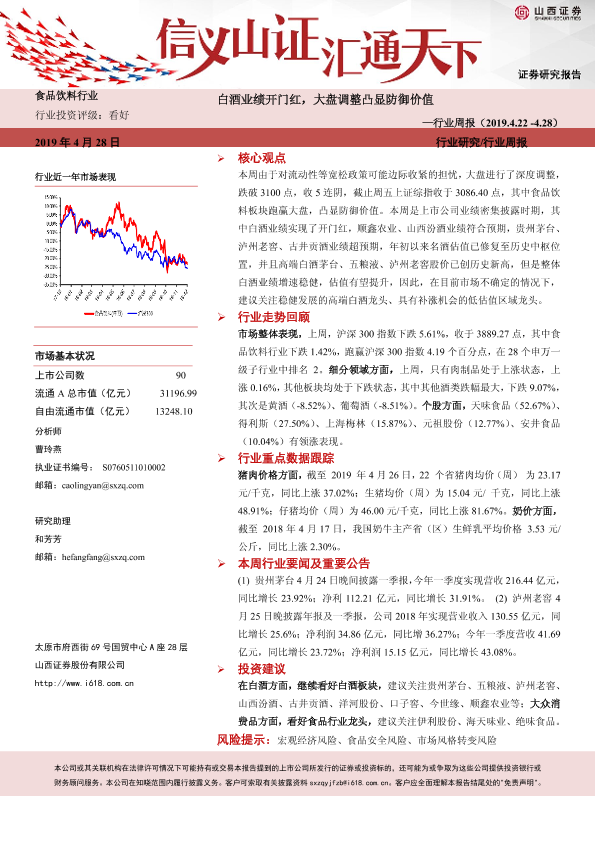 【山西证券】【20190428】20190428-山西证券-食品饮料行业周报:白酒业绩开门红,大盘调整凸显防御价值-11页