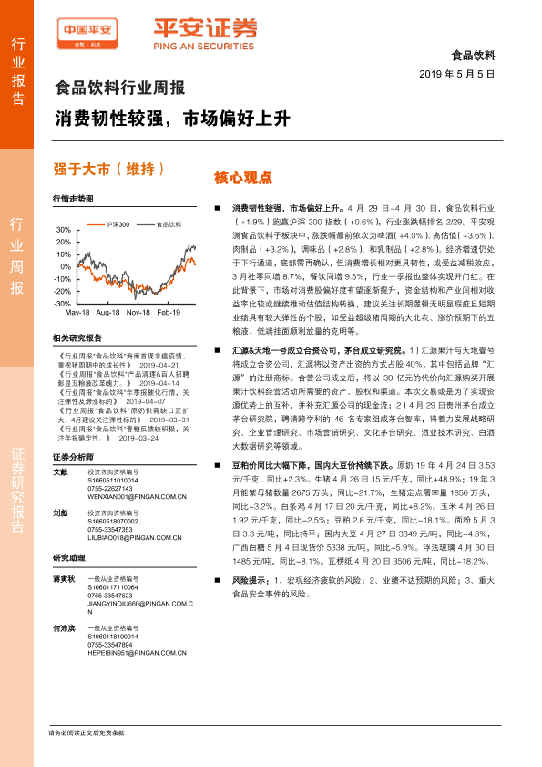 【平安证券】【20190505】食品饮料行业周报:消费韧性较强,市场偏好上升-6页
