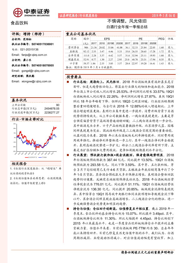 【中泰证券】【20190506】20190506-中泰证券-白酒行业年报一季报总结:不惧调整,风光依旧-15页