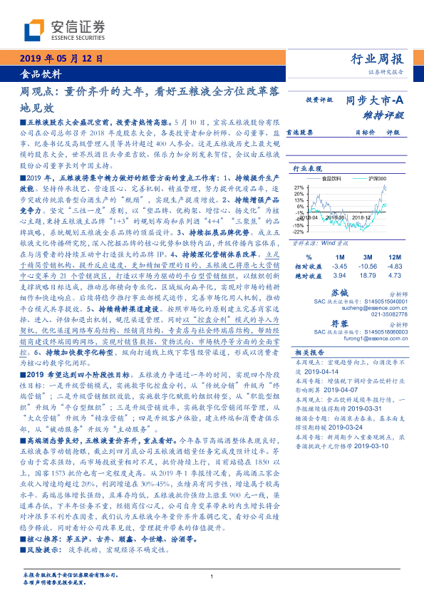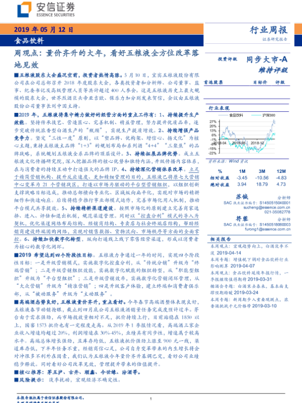 【安信证券】【20190512】20190512-安信证券-食品饮料周观点:量价齐升的大年,看好五粮液全方位改革落地见效-29页