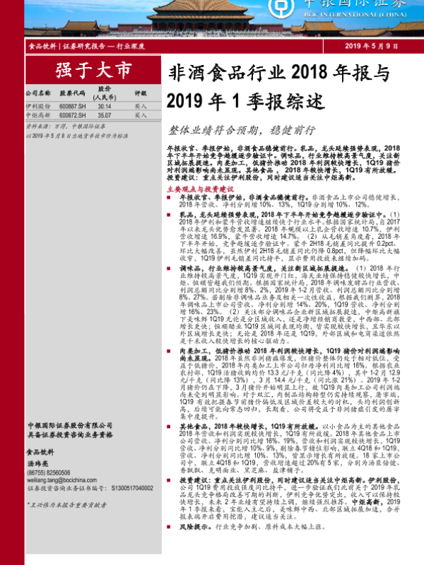 【中银证券】【20190509】非酒食品行业2018年报与2019年1季报综述:整体业绩符合预期,稳健前行-22页