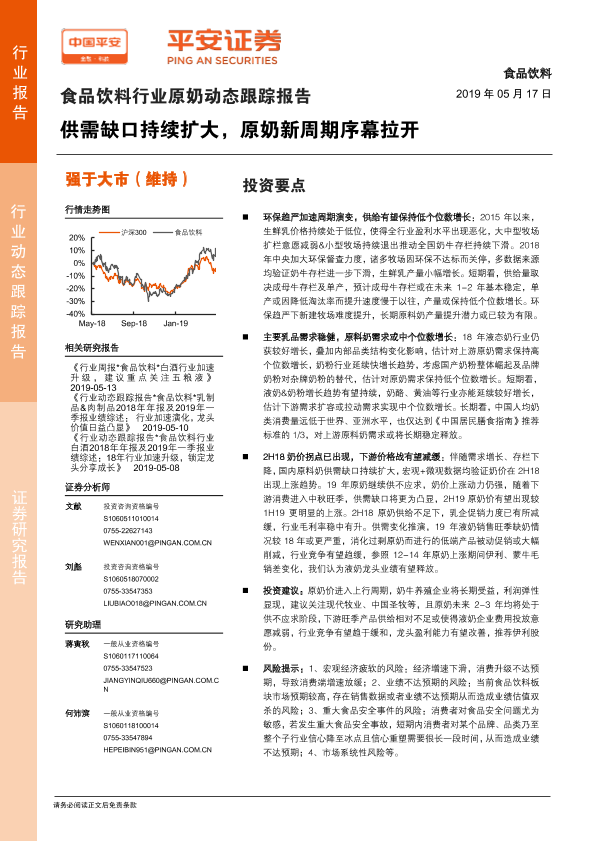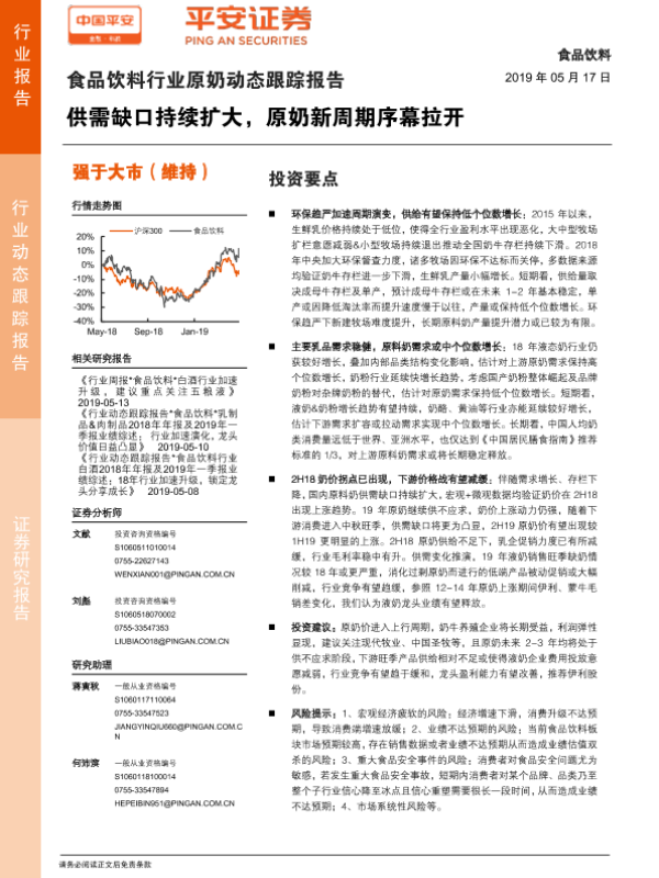 【平安证券】【20190517】食品饮料行业原奶动态跟踪报告:供需缺口持续扩大,原奶新周期序幕拉开-9页