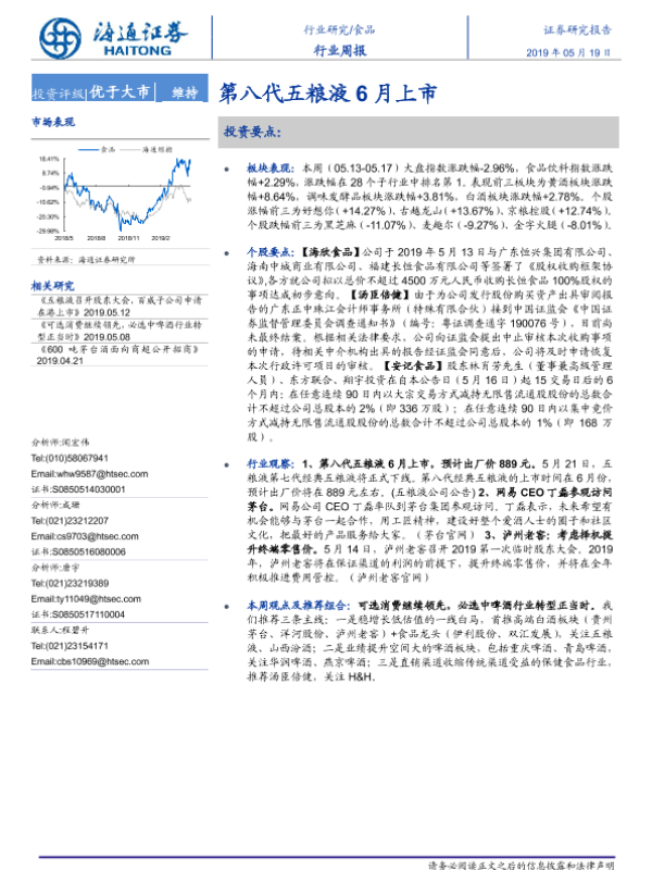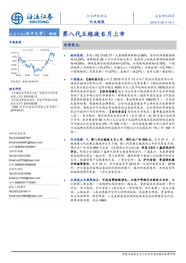 【海通证券】【20190519】20190519-海通证券-食品行业周报:第八代五粮液6月上市-13页