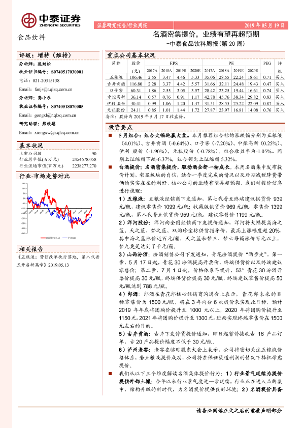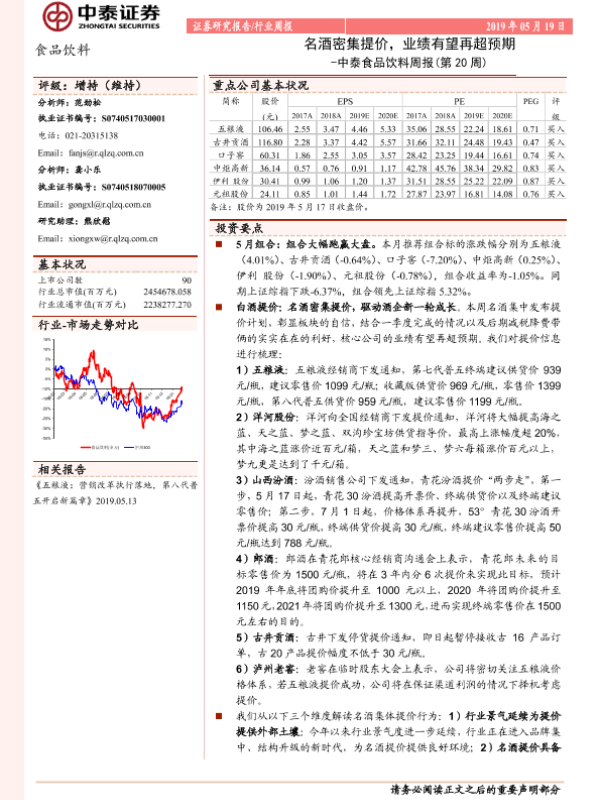 【中泰证券】【20190519】中泰食品饮料周报(第20周):名酒密集提价,业绩有望再超预期-10页