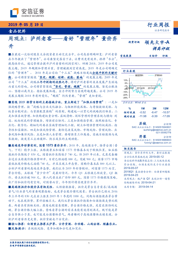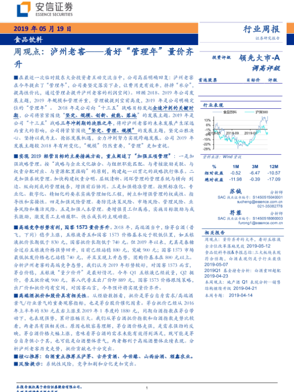 【安信证券】【20190519】20190519-安信证券-食品饮料周观点:泸州老窖——看好“管理年”量价齐升-29页