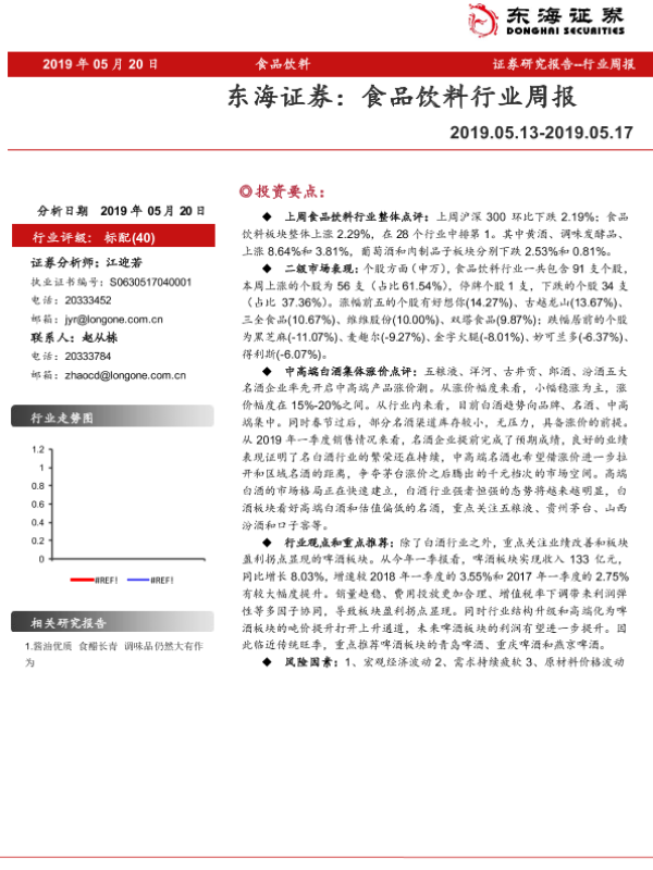【东海证券】【20190520】20190520-东海证券-食品饮料行业周报-8页