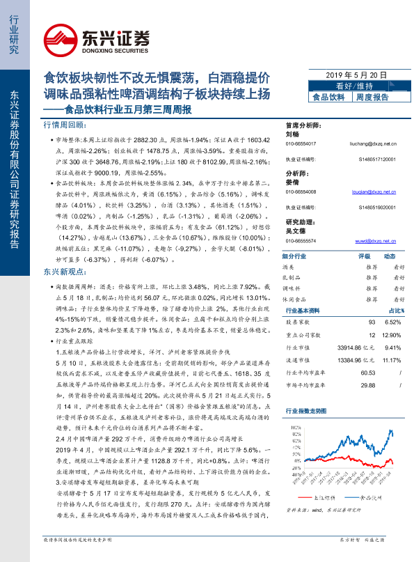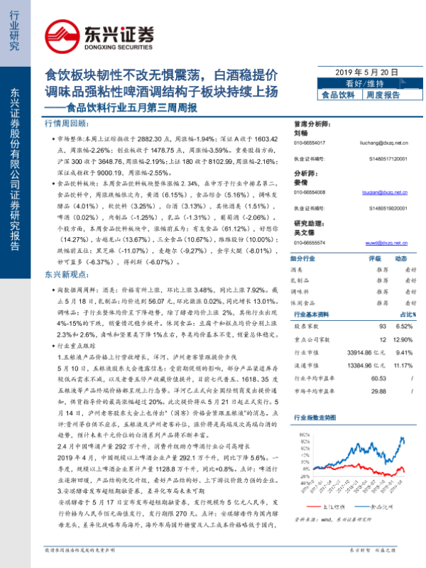 【东兴证券】【20190520】食饮板块韧性不改无惧震荡,白酒稳提价调味品强粘性啤酒调结构子板块持续上扬-46页