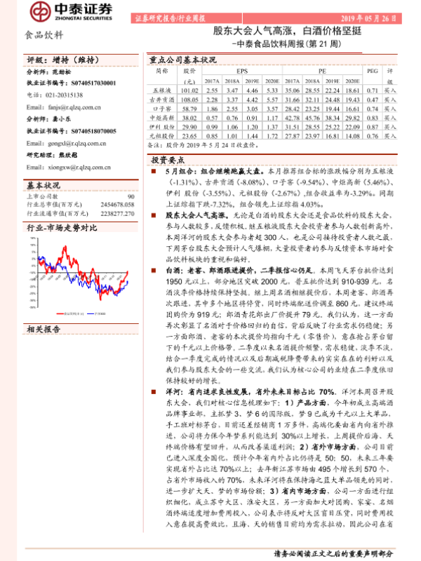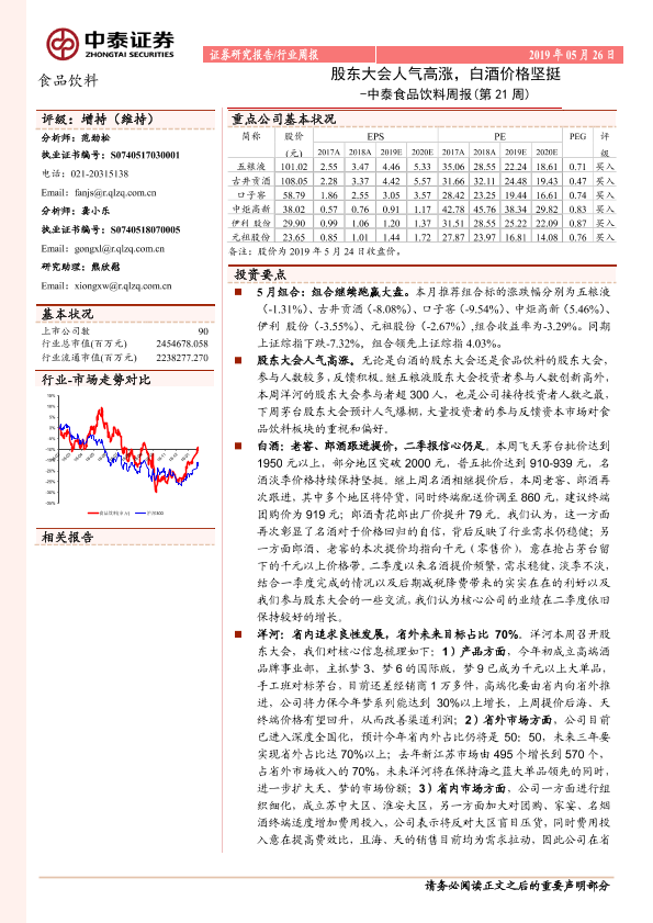 【中泰证券】【20190526】中泰食品饮料周报(第21周):股东大会人气高涨,白酒价格坚挺-9页