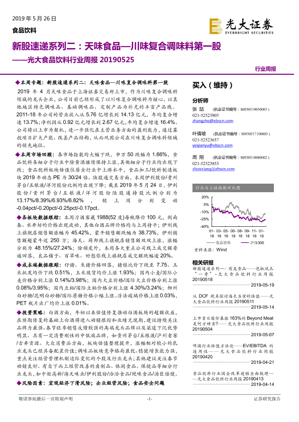 【光大证券】【20190526】20190526-光大证券-光大食品饮料行业周报:新股速递系列二:天味食品—川味复合调味料第一股-27页