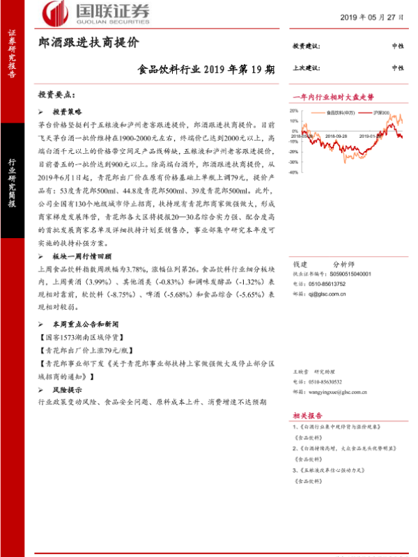 【国联证券】【20190527】食品饮料行业2019年第19期:郎酒跟进扶商提价-12页
