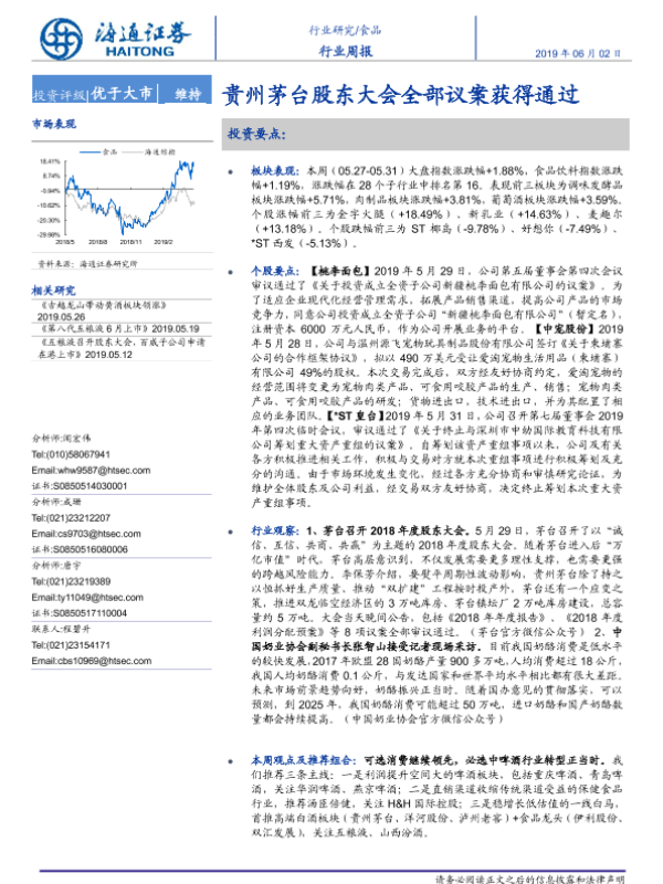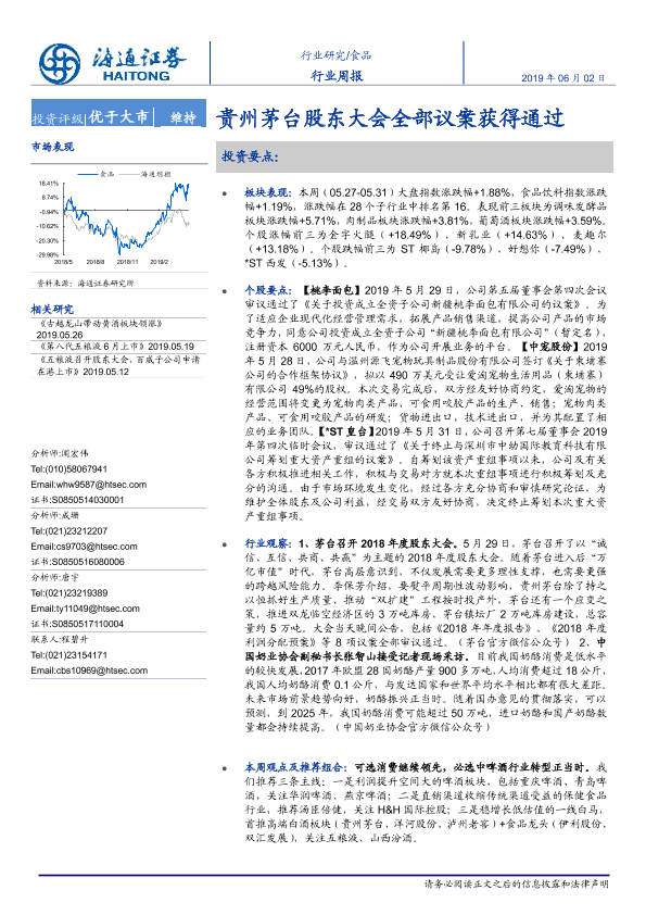 【海通证券】【20190602】20190602-海通证券-食品行业周报:贵州茅台股东大会全部议案获得通过-12页