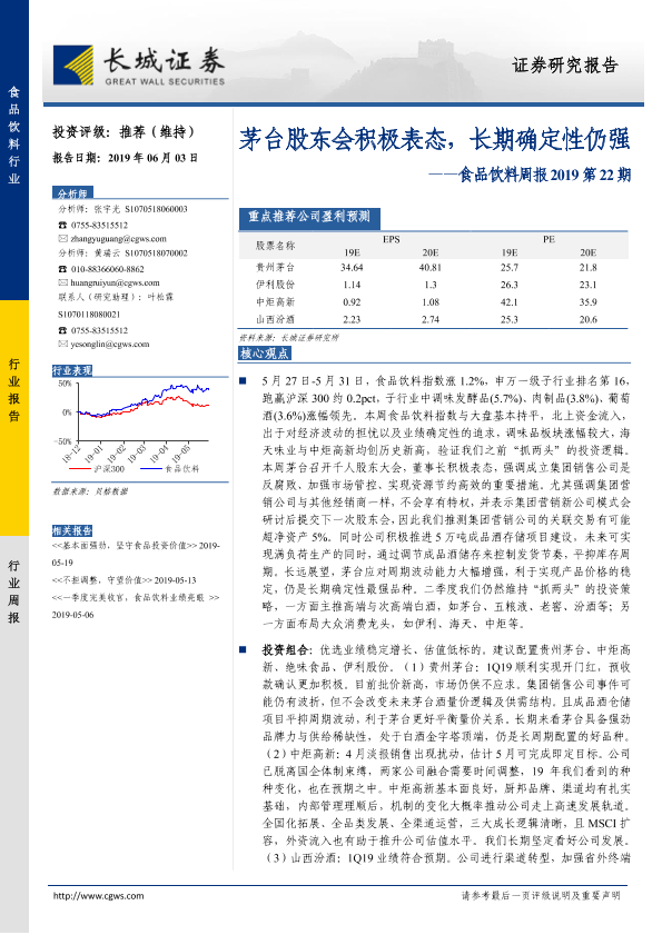 【长城证券】【20190603】食品饮料周报2019第22期:茅台股东会积极表态,长期确定性仍强-11页