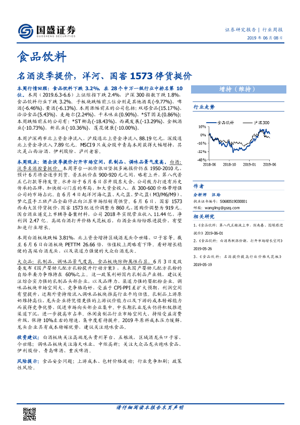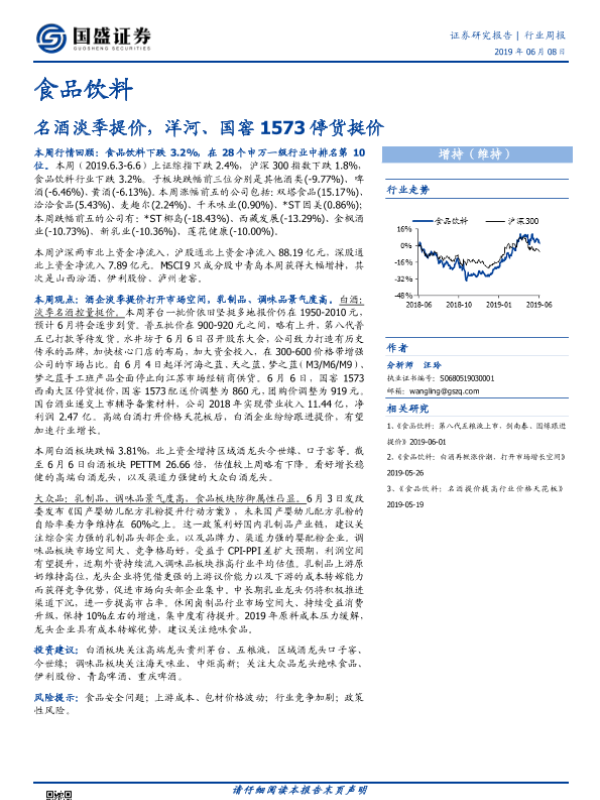 【国盛证券】【20190608】20190608-国盛证券-食品饮料行业周报:名酒淡季提价,洋河、国窖1573停货挺价-16页