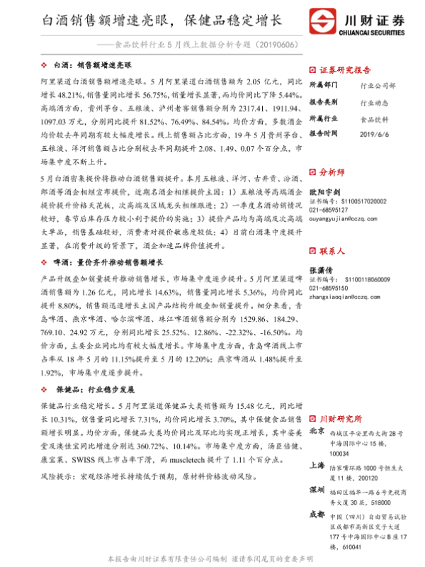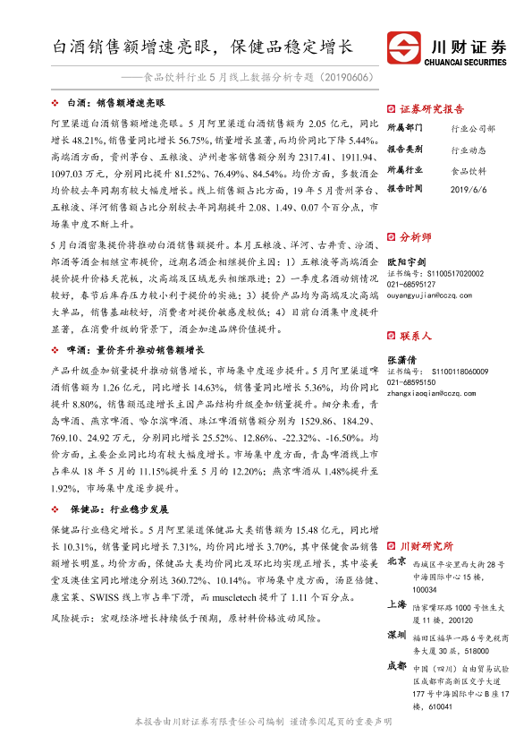 【川财证券】【20190606】食品饮料行业5月线上数据分析专题:白酒销售额增速亮眼,保健品稳定增长-12页
