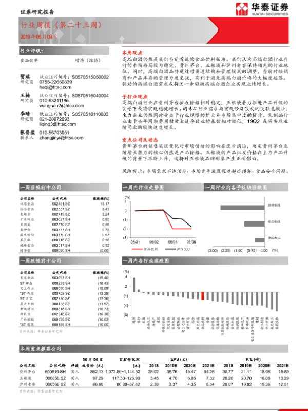 【华泰证券】【20190609】20190609-华泰证券-食品饮料行业周报(第二十三周)-8页