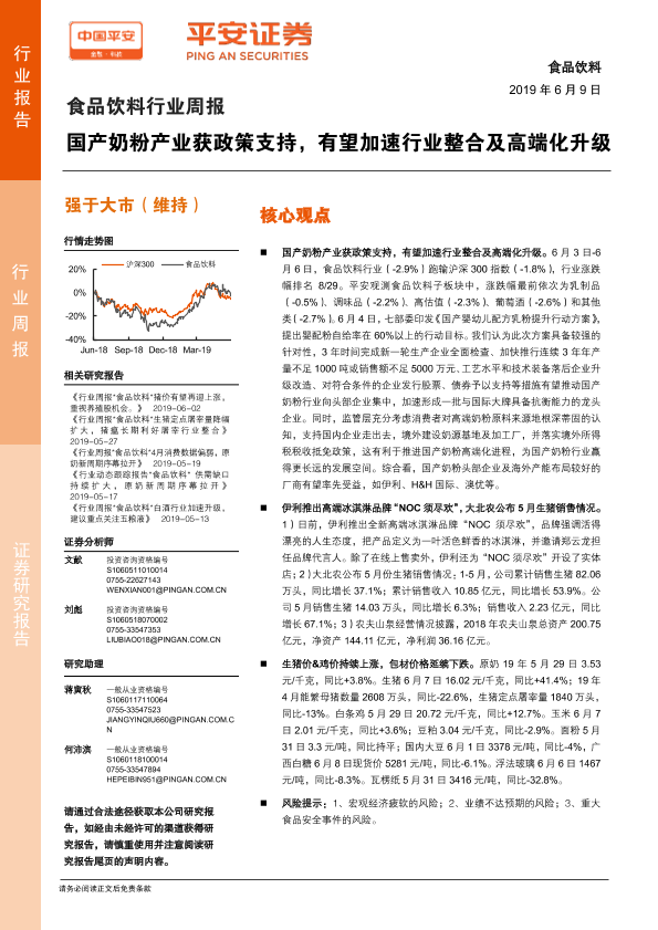 【平安证券】【20190609】食品饮料行业周报:国产奶粉产业获政策支持,有望加速行业整合及高端化升级-6页