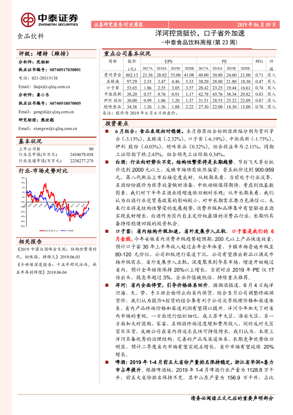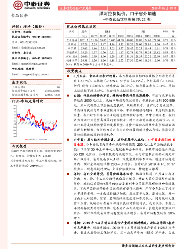 【中泰证券】【20190609】中泰食品饮料周报(第23周):洋河控货挺价,口子省外加速-10页