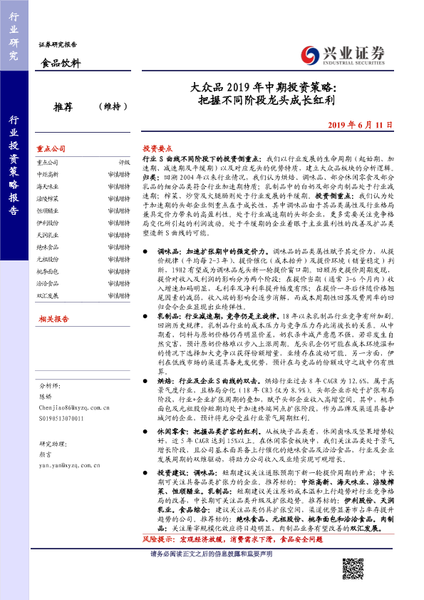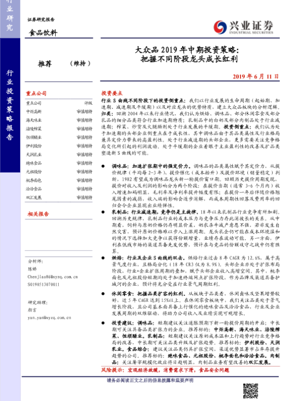 【兴业证券】【20190611】大众品2019年中期投资策略:把握不同阶段龙头成长红利-53页