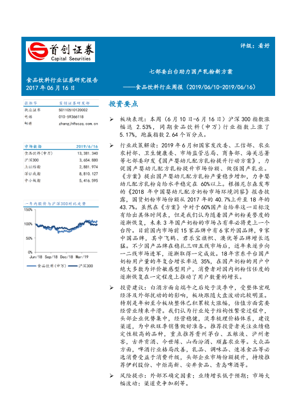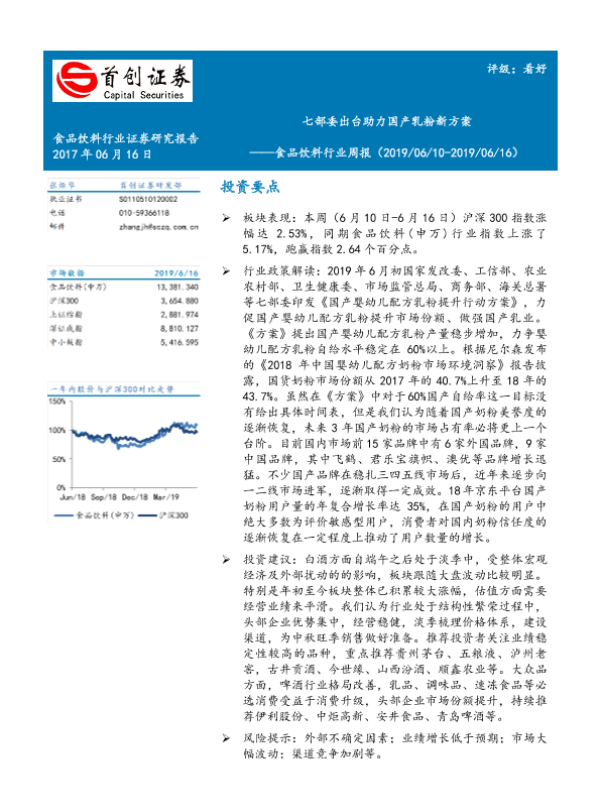 【首创证券】【20190616】20190616-首创证券-食品饮料行业周报:七部委出台助力国产乳粉新方案-9页