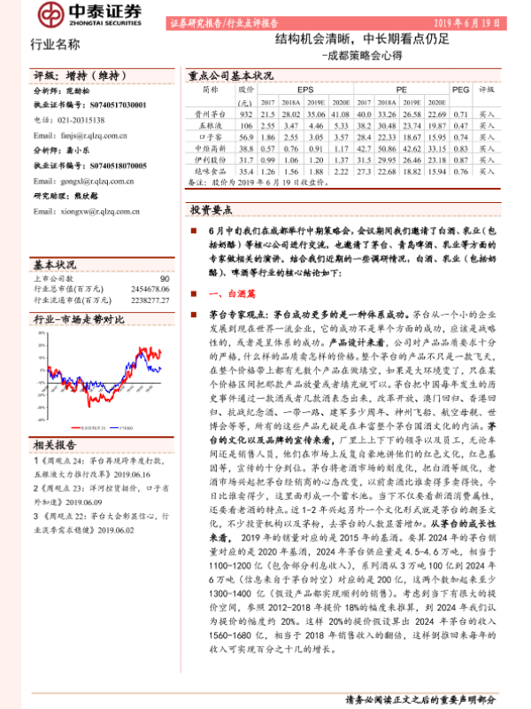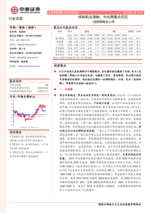 【中泰证券】【20190619】20190619-中泰证券-食品饮料行业点评报告:成都策略会心得-结构机会清晰,中长期看点仍足-8页