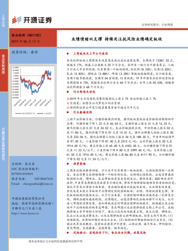 【开源证券】【20190617】20190617-开源证券-食品饮料行业周报:业绩情绪双支撑 持续关注抗风险业绩确定板块-15页