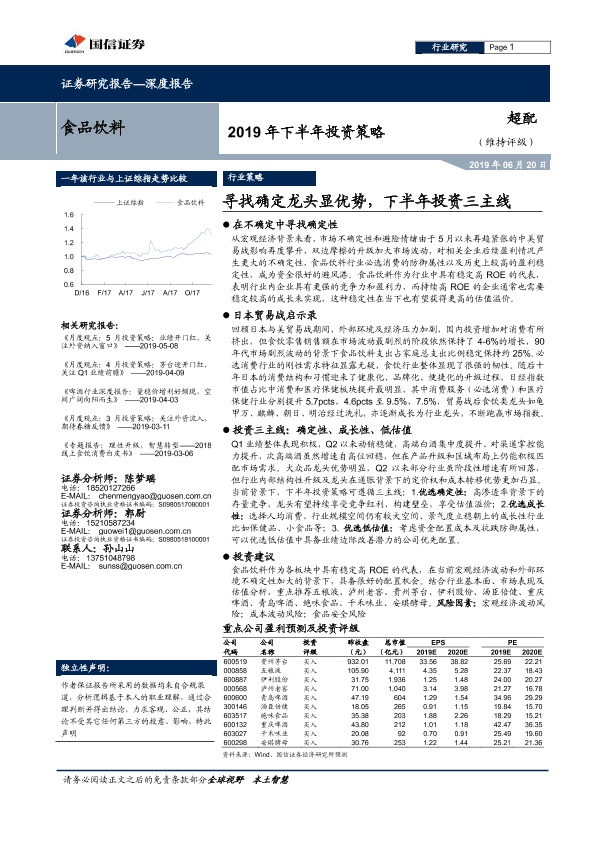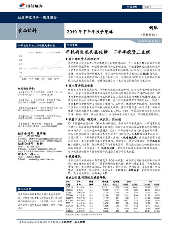 【国信证券】【20190620】食品饮料行业2019 年下半年投资策略:寻找确定龙头显优势,下半年投资三主线-33页